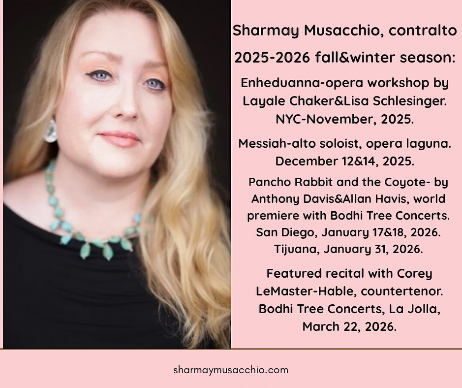 “Contralto Sharmay Musacchio deployed impressive low notes as Swift (another one of the children) and as Dr. Overcast” - Spoleto Festival, USA